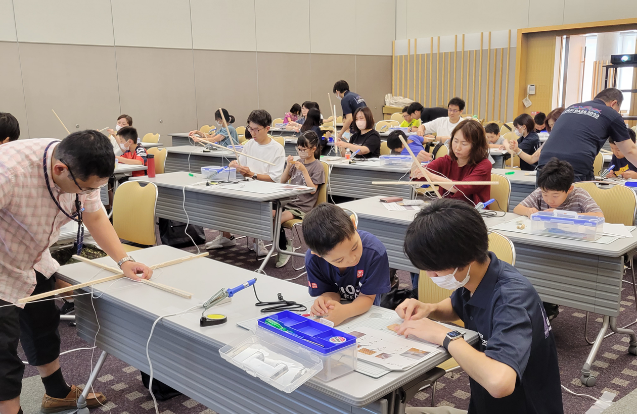 電波科学関連技術が毎日の暮らしの中でどのように活かされているかを、親子で楽しく学んでもらう科学教室が会議最終日に開催されました。子どもたちはサポート役の大学生と一緒に電池を使用しない「ゲルマニウムラジオ」を、保護者は受信用の大型アンテナをそれぞれ製作し、電波の不思議さや面白さ体感。停電や通信が途絶えた災害時のラジオの活用について考えるきっかけにもなりました。また、参加した札幌と陸別の小学生がオンラインで交流する企画や、札幌市青少年科学館の協力によるサイエンスショーも実施。目には見えない電波科学の世界を、子どもだちが身近に体験できた1日となりました。